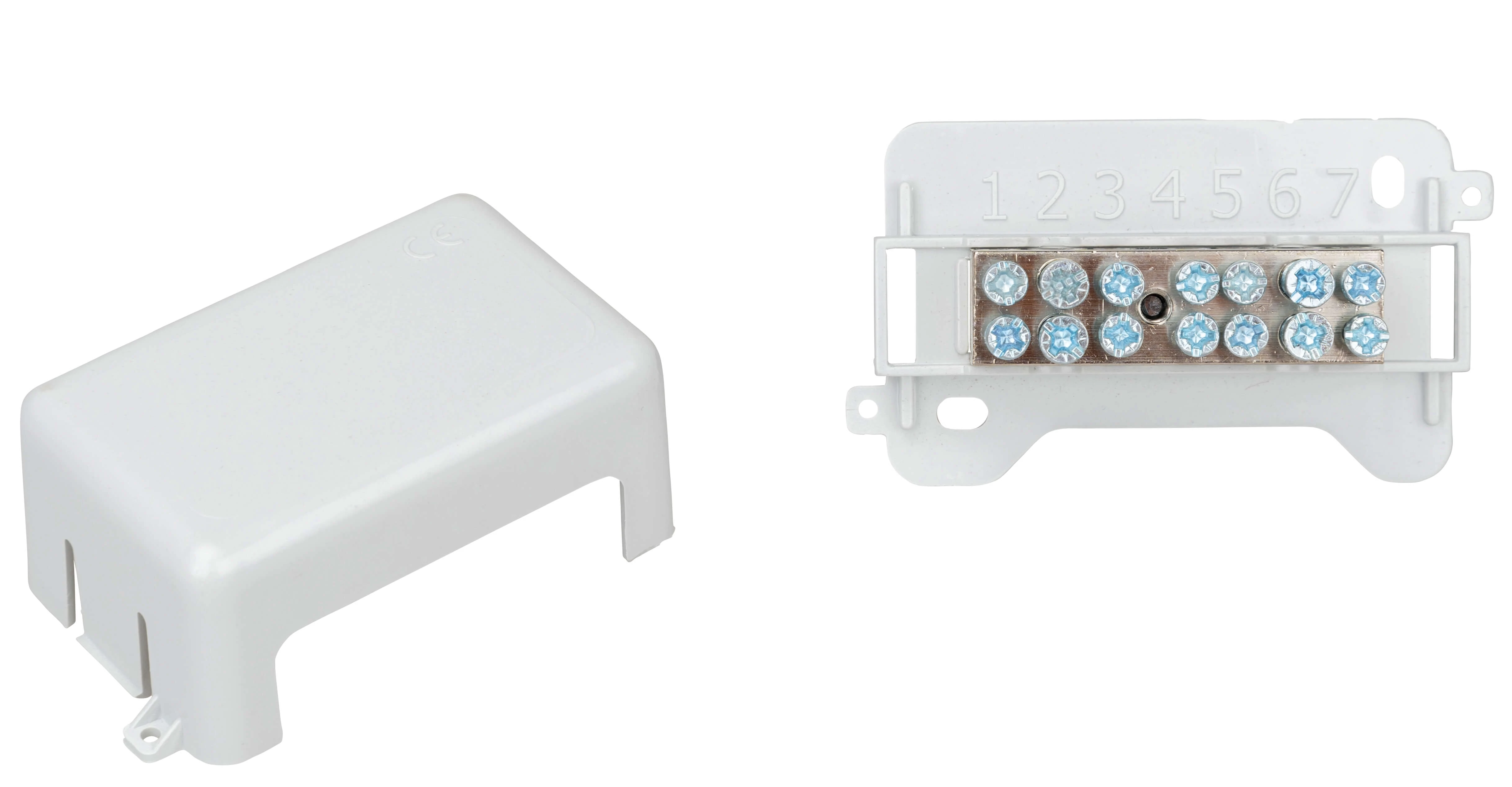Potenciálkiegyenlítő sín, rövid kialakítás, 7 kapocs