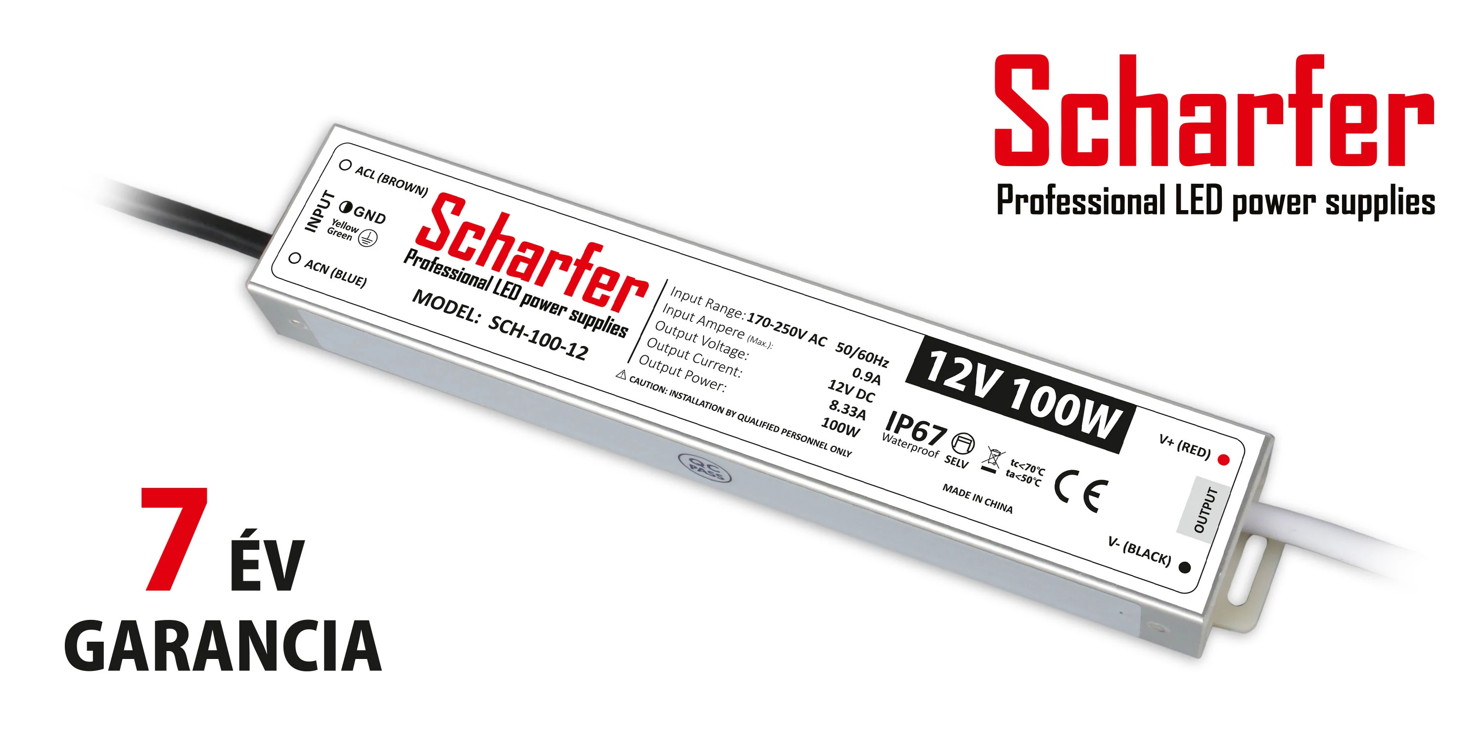 Scharfer LED tápegységek 7 év garanciával, IP67 védelemmel.
