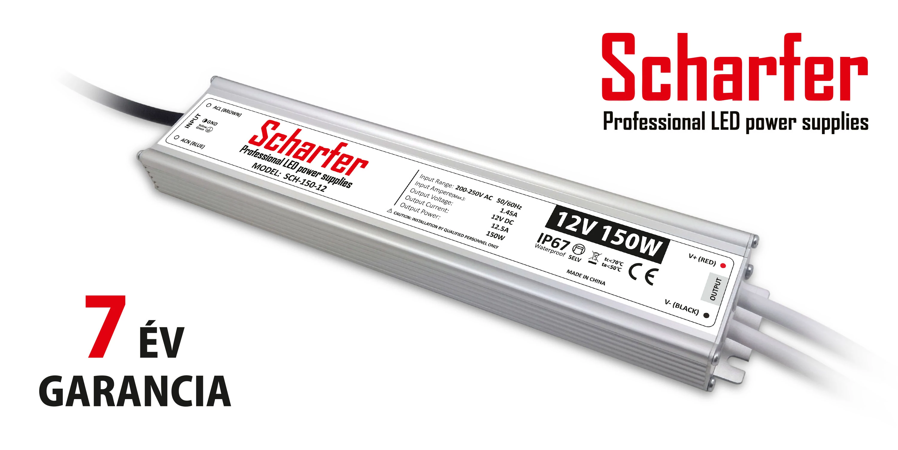 Scharfer LED tápegységek 7 év garanciával, IP67 védelemmel.