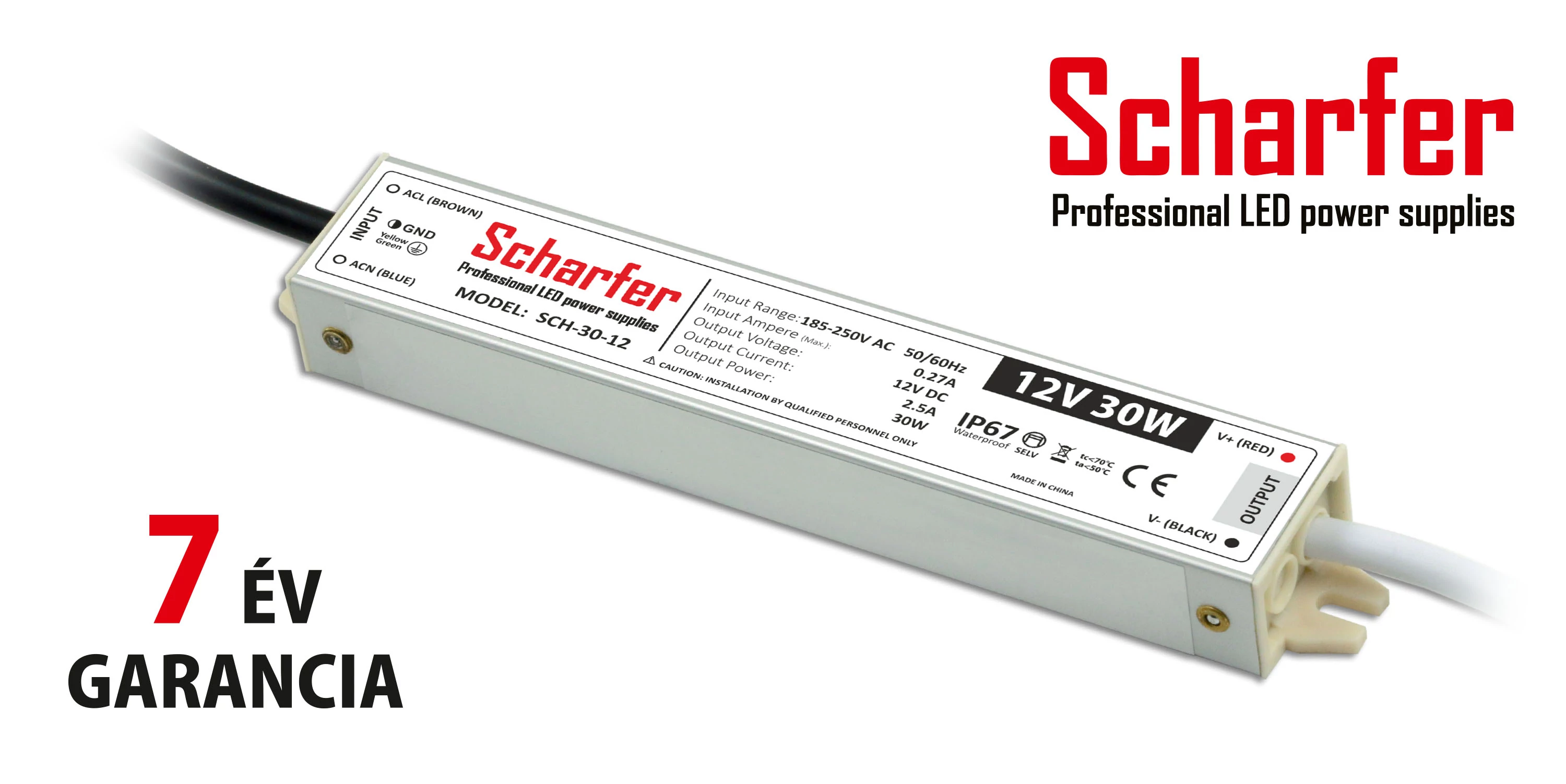 Scharfer LED tápegységek 7 év garanciával, IP67 védelemmel.