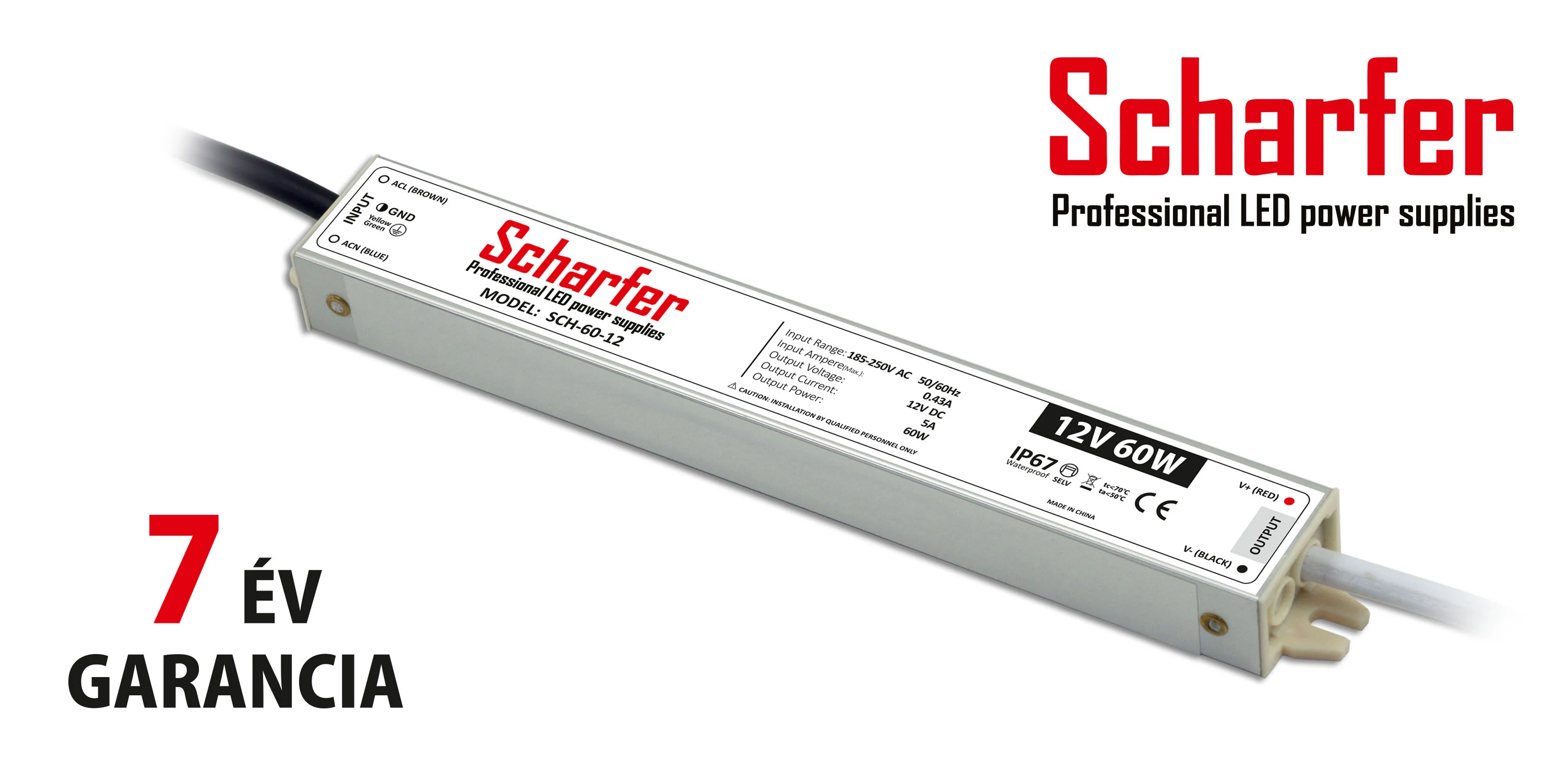 Scharfer LED tápegységek 7 év garanciával, IP67 védelemmel.
