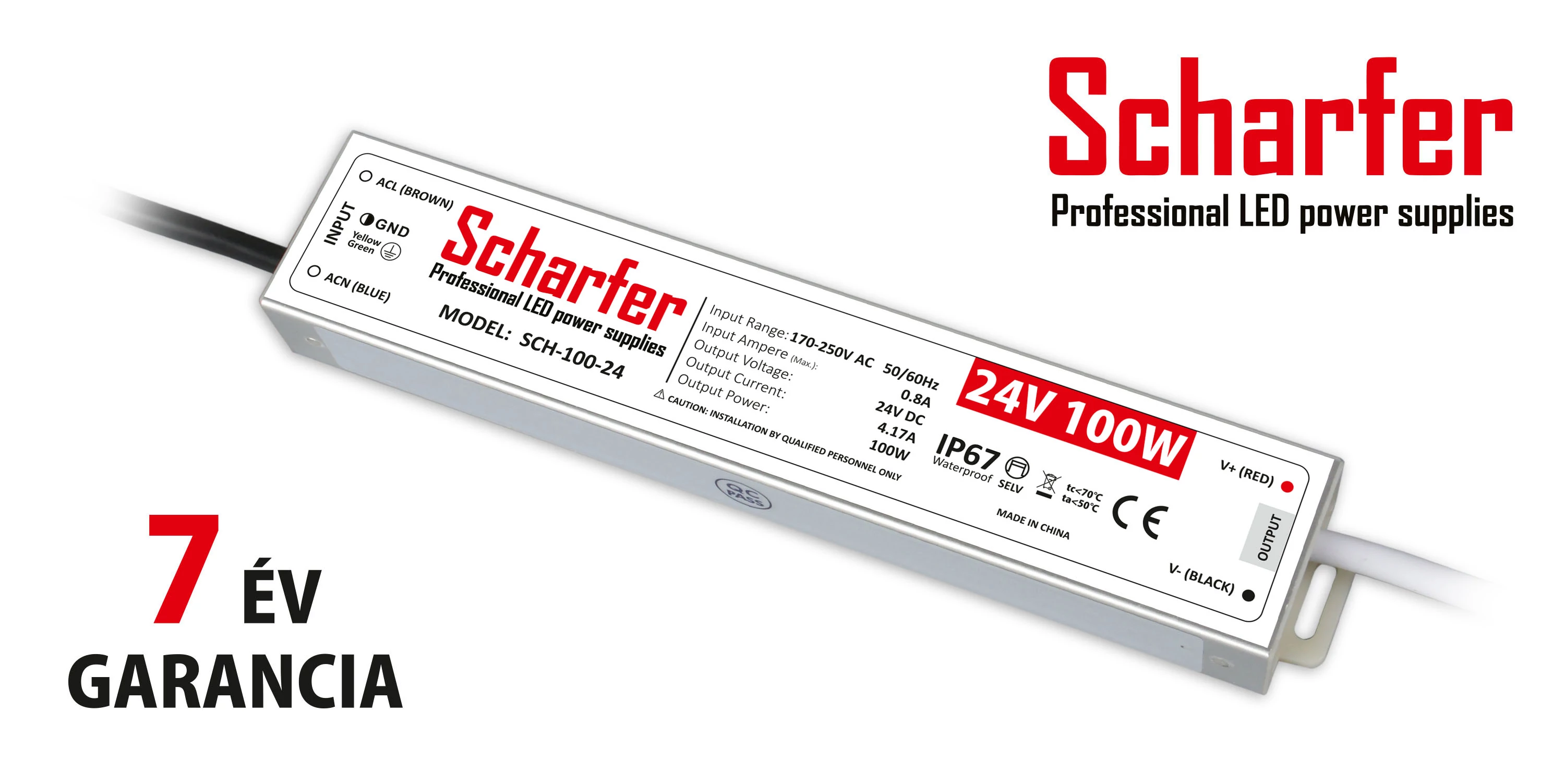 Scharfer LED tápegységek 7 év garanciával, IP67 védelemmel.