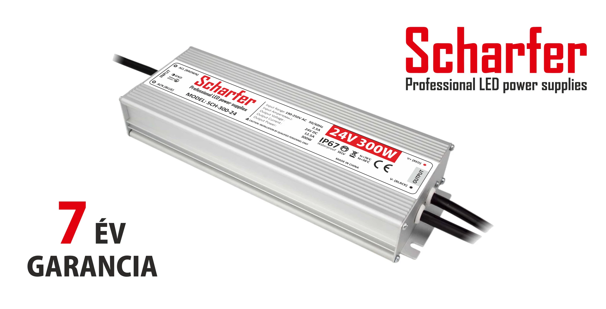 Scharfer LED tápegységek 7 év garanciával, IP67 védelemmel.