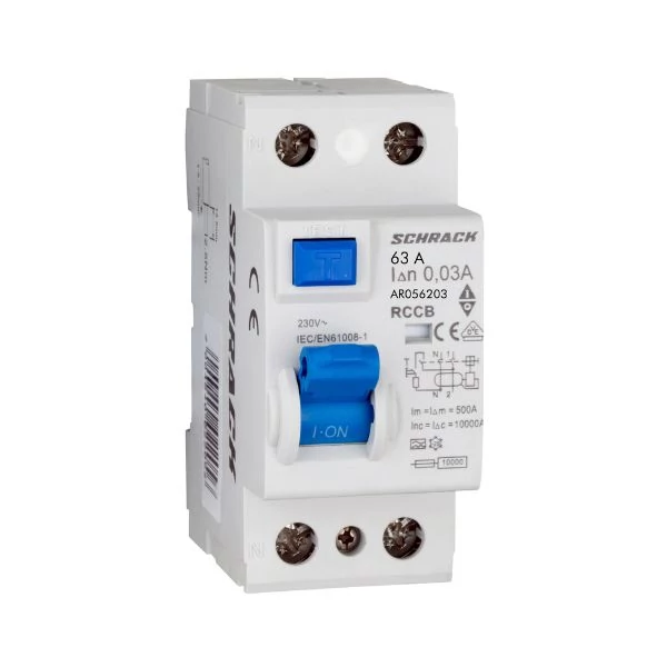 Schrack Hibaáram kapcsoló AMPARO 10kA 63A, 2 pólusú, 30mA, A